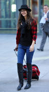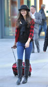 Victoria Justice desembarcando no aeroporto Heathrow, em Londres
